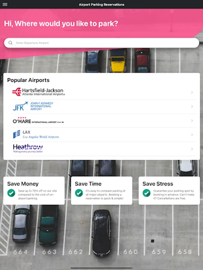 When you are catching a flight the last thing you want to worry about is getting to the airport at time. Parking at an international airport parking lot is way too expensive and thats if you are lucky to find a free space. We have a better idea. You can download our application and compare rate, reviews and features for parking lots near the airport and book a guarantee space for the best price! The terminal is just a short shuttle ride away.