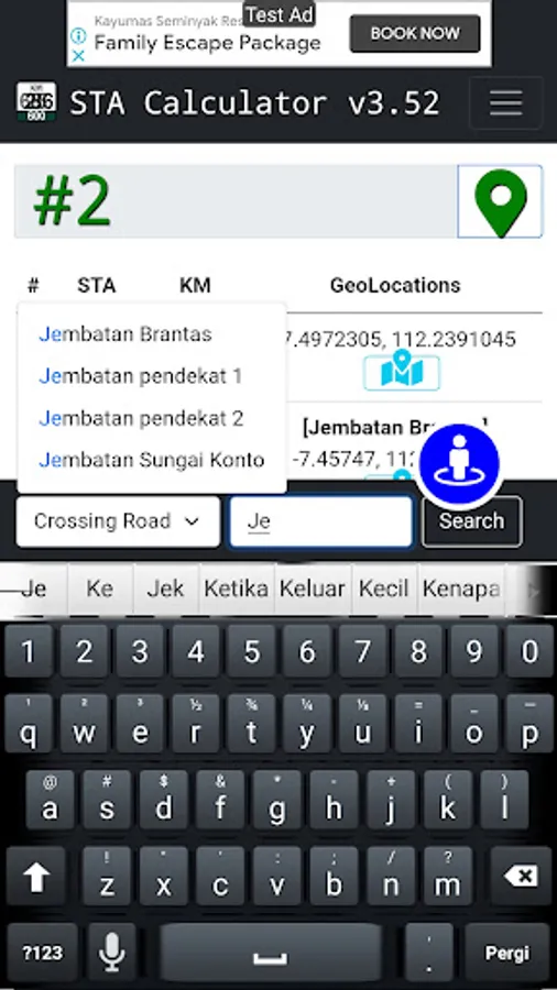 Knowing the location of the STA (Statinioring) on the Jombang - Mojokerto Toll Road. The distribution of geotaging marks per 25 meters makes it easier for road workers to find out the location of an asset, incident, or damage then the information can be conveyed to the communication center for follow-up.