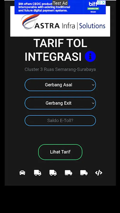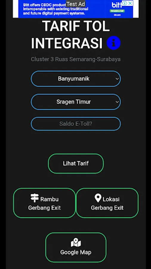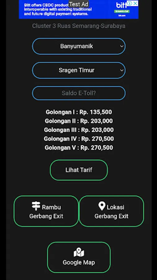 An application that provides information about toll rates on cluster 3 segments with the addition of a suggestion feature to exit the gate if the electronic money balance is not sufficient to go out at the destination gate.