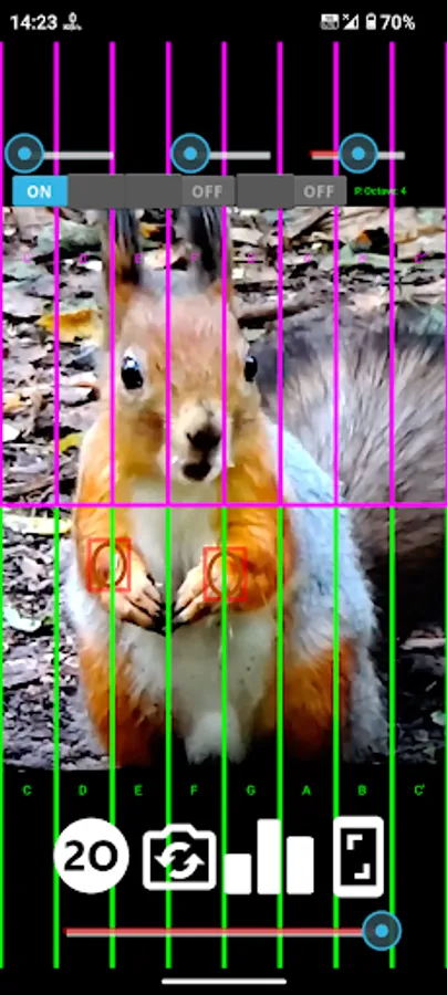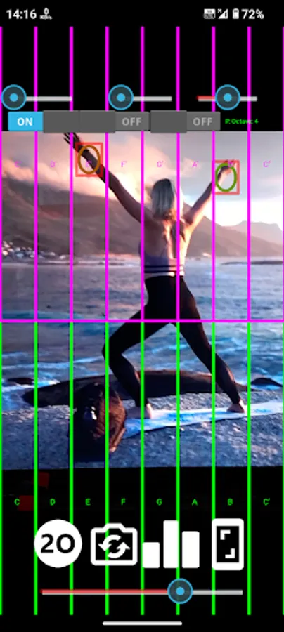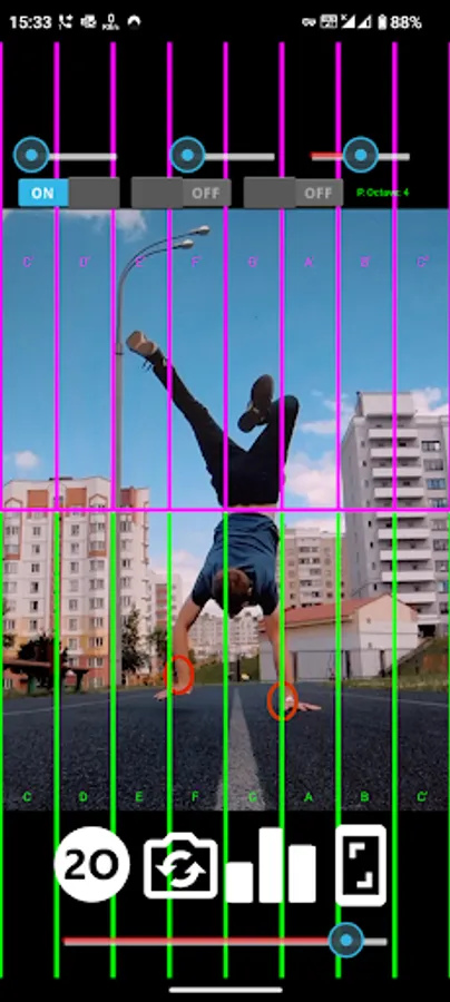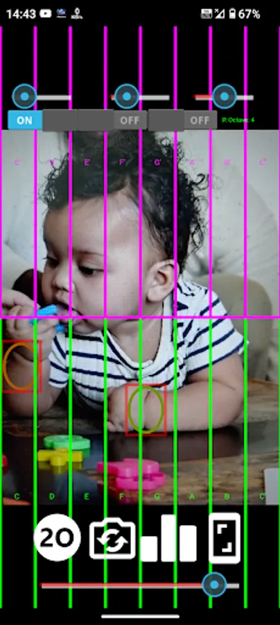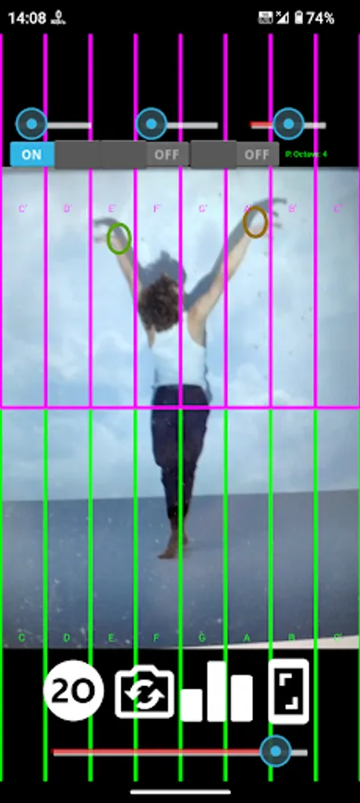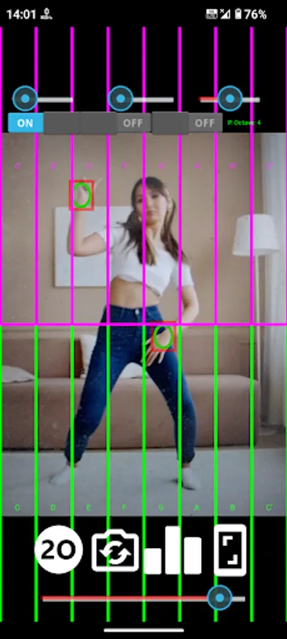 The app is encoded with the latest AI technology to detect hand movements to play music. It has 3 modes (piano, guitar, and flute) as the on/off switches. AI detection confidences, detected sizes, and octaves can be adjusted by the left(top) sliders while the music play frequency (i.e. beats) can be adjusted by the right(bottom) slider in the horizontal (vertical) mode respectively.