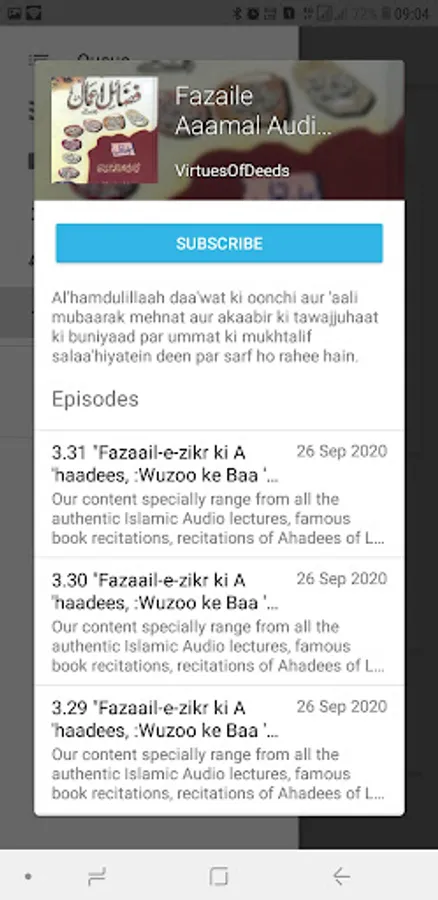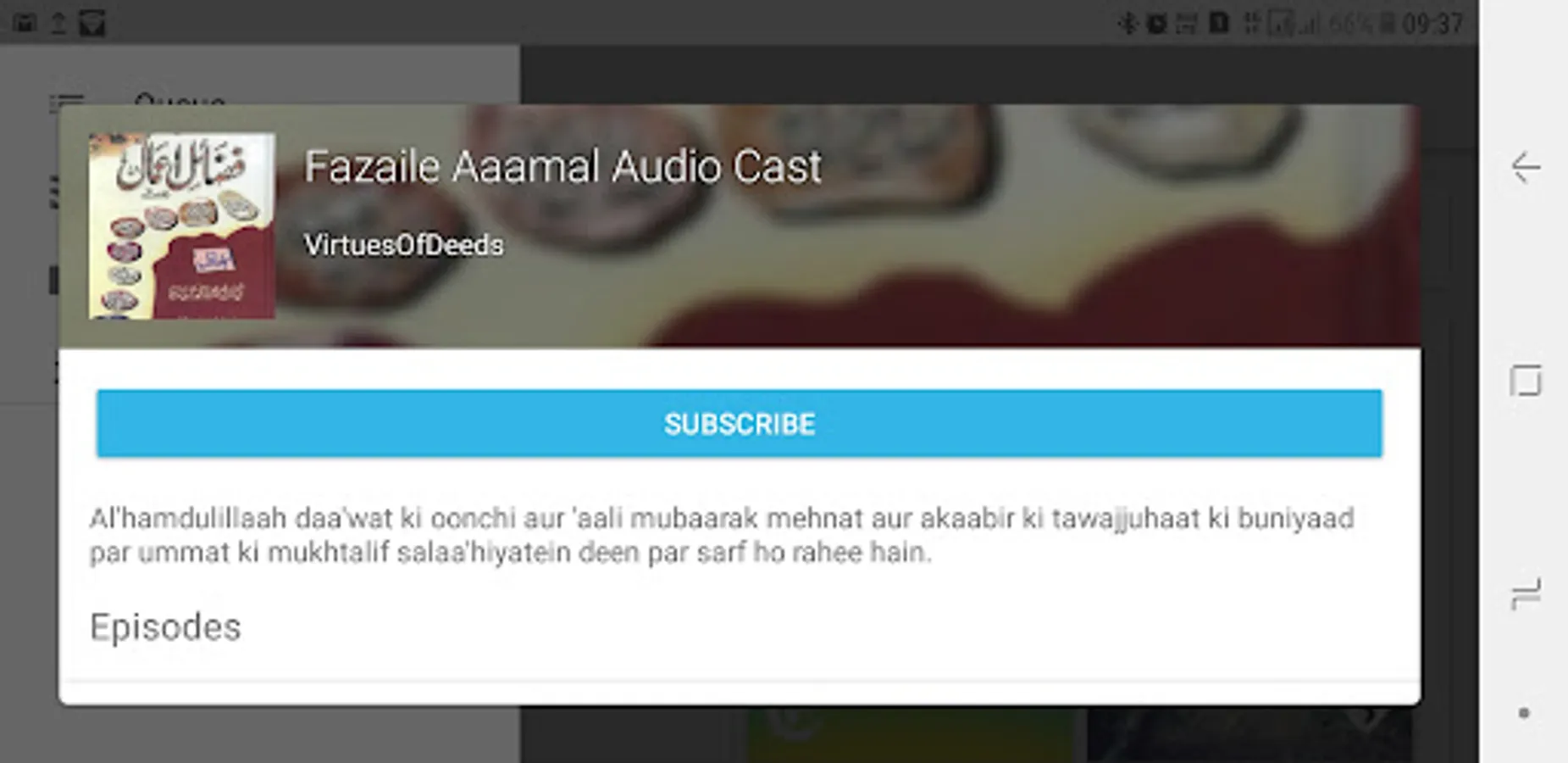 Virtues of Deeds Audiocast is an Android app in the form of an audio library preserved from the recitation of the same book written by Maulana Zakaria Kandhalvi, India. This book is a collection of quotations (hadiths) of Muhammad (peace be upon him) and references to the Holy Quran. Therefore, the virtue of good deeds has been explained.