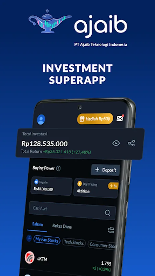 Ajaib Platform (Apps) is fully owned and managed by PT Ajaib Teknologi Indonesia. Ajaib Apps provides various best investments products to public, independently from each of Ajaib Group's affiliated companies, as follows:
