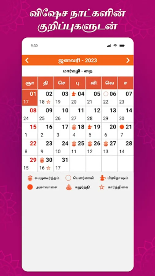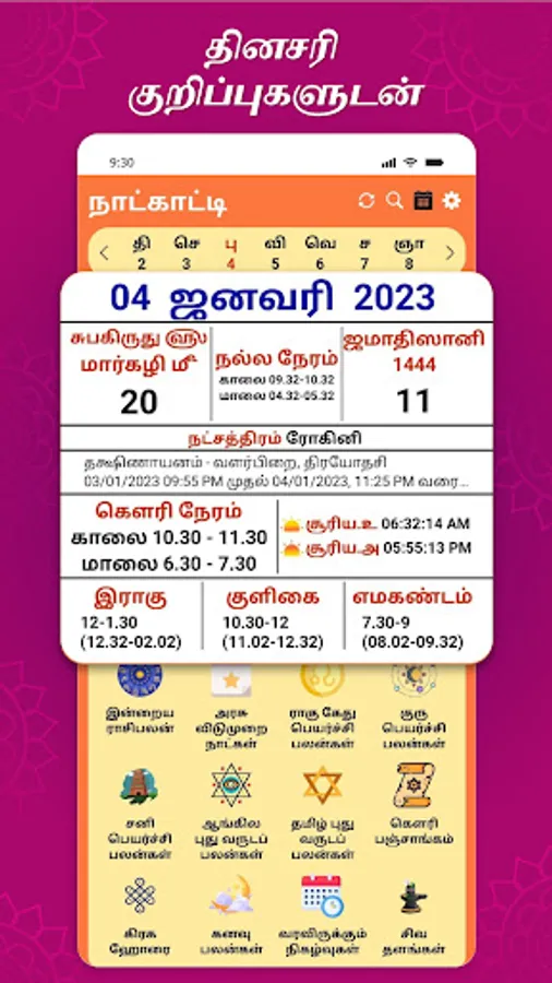 Tamil Daily Calendar 2023 will help you to keep track of all our auspicious days and align you with various auspicious timings. This app is a great tool that helps you to plan your days for success.