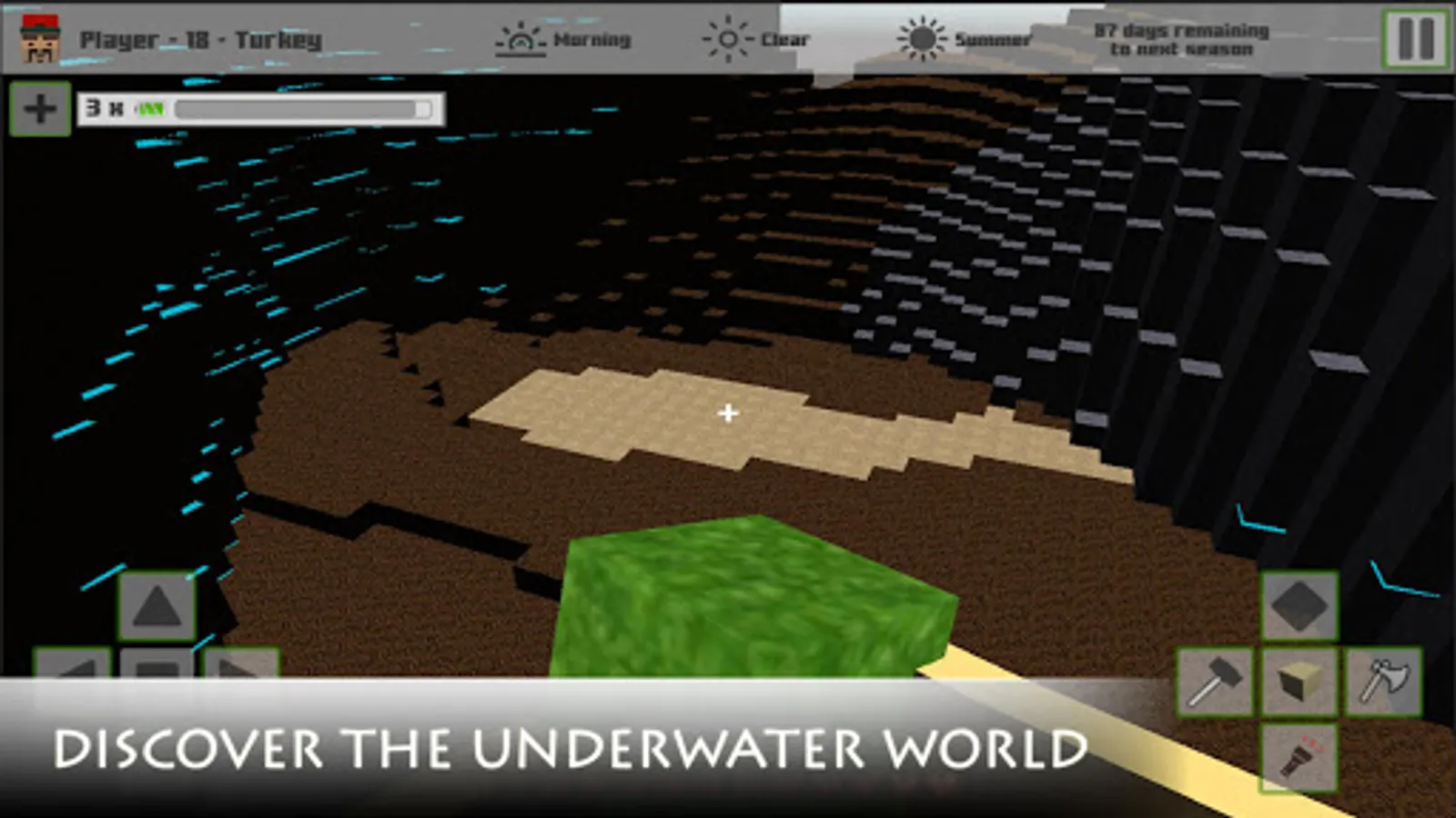Explore, mine resources, craft tools and weapons,