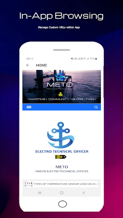 METO is a unique android app specially developed for all ETOs. Users can access this app from any corner of the world. The METO app is free to use and there is no subscription charges. The app provides accurate information which is confirmed to be true. The aim of this app is to provide accurate information about Marine Electro Technology used in Ships & to build a community to connect all ETOs worldwide. This app has got mind blowing features, this is our initiative for ETO we require more support from your end. Thanks to all users who is using this app.