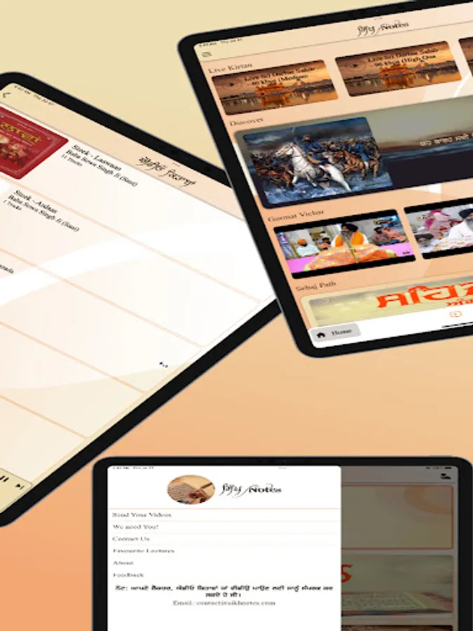 You can listen to Nitnem, Audio Books, and Sehaj Path.