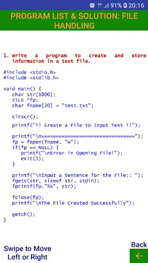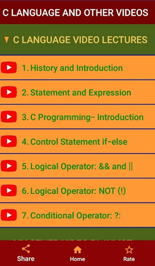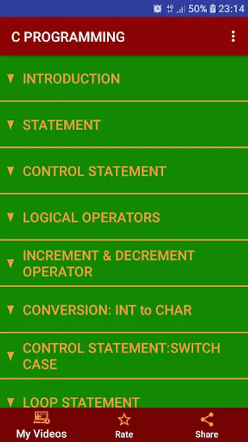 This tutorial app contains a different section of the different topics of the C programming language. The different topics are as follows: