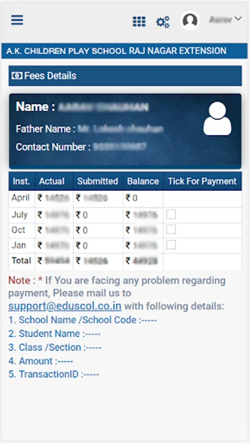 eduSCOL also enable parents to view the activity of their child in the school viz; Academic performance, Attendance, notices and circulars sent by the school and other related events. It compliments the Parent Teacher Meetings related to assessment of the child's performance and behavior on regular basis. It facilitates viewing Fee Dues of their wards for respective installments and allows payment of fee Online from remote locations.