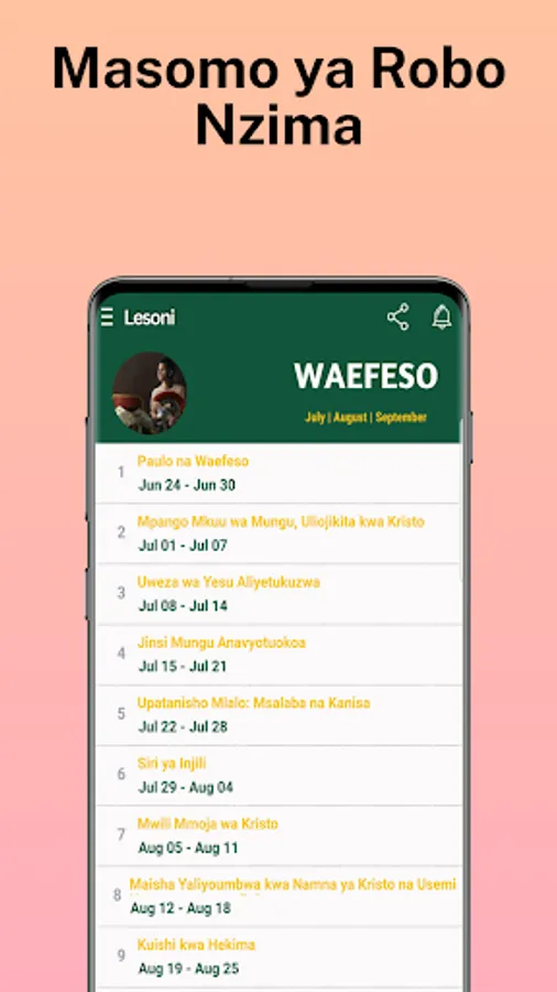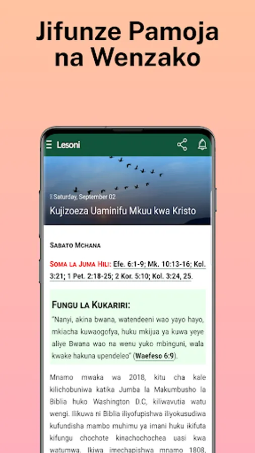Pata masomo yote ya muongozo wa kujifunza Biblia kwa watu wa wazima kwa robo zote nne. App hii ni rahisi kutumia na imesheni vipengele mbali mbali ambavyo vitakufanya ufurahie pale unapojifunza.