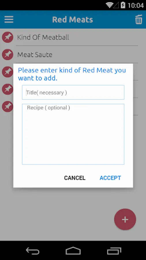 Open application and turn the food wheel to get foods foreach category besides RECIPES.