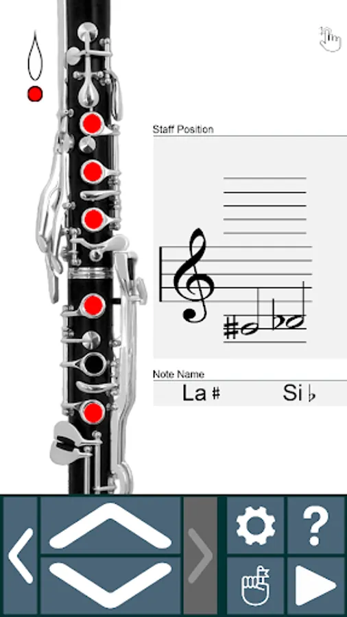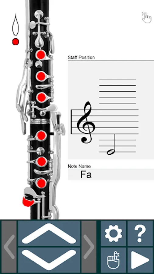 - By clicking on the left-right buttons, you can see alternative fingerings for the selected note