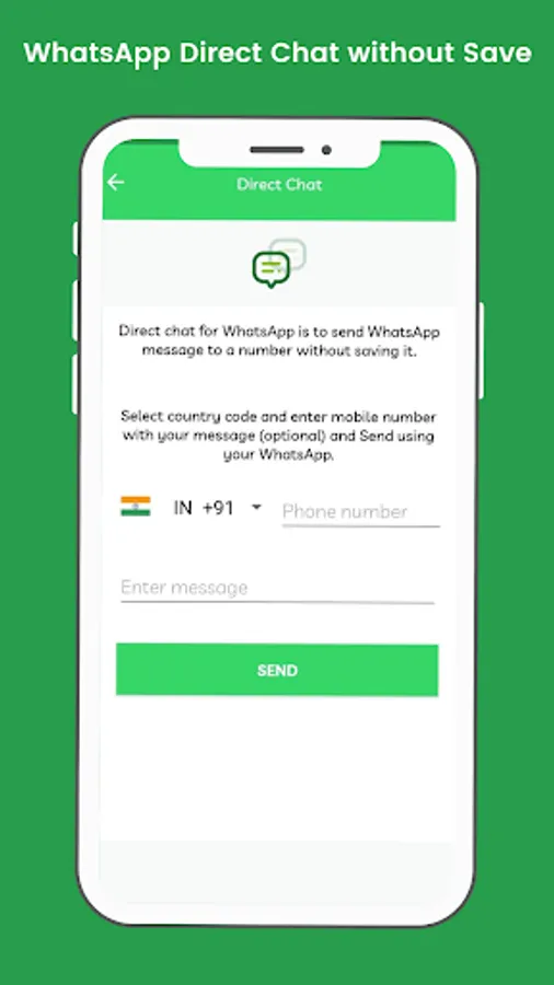 Send Direct Chat message to for Whatsapp number without saving it using the Direct Chat option for whatsapp web scan app. You can use this app same as whatsweb for pc.