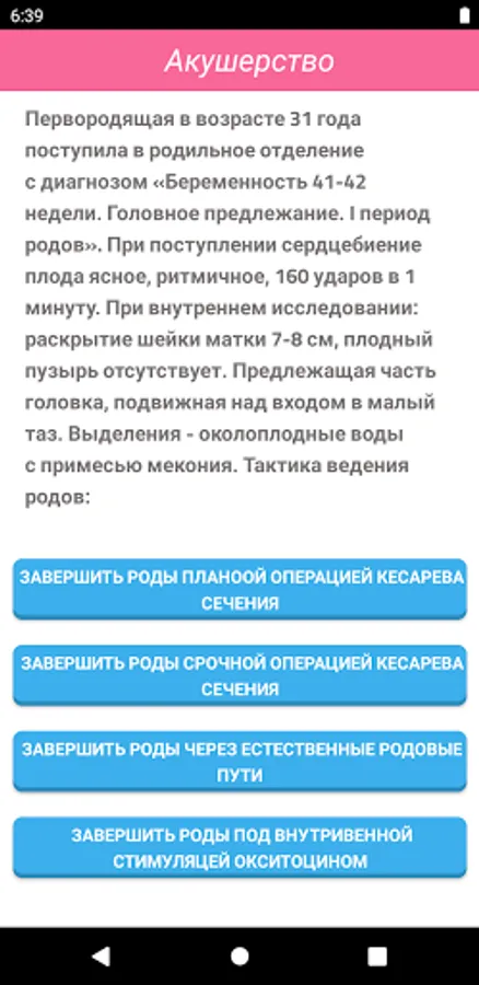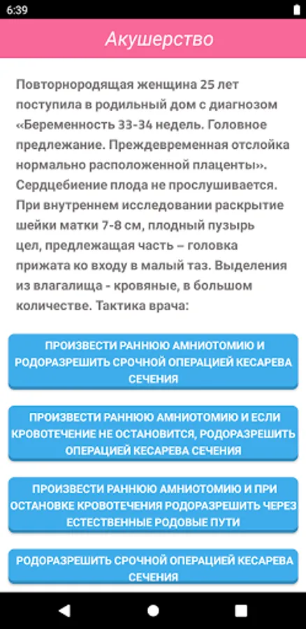 The tests are intended for senior students of medical universities, interns, doctors of antenatal clinics, maternity hospitals, perinatal centers, residents, graduate students.