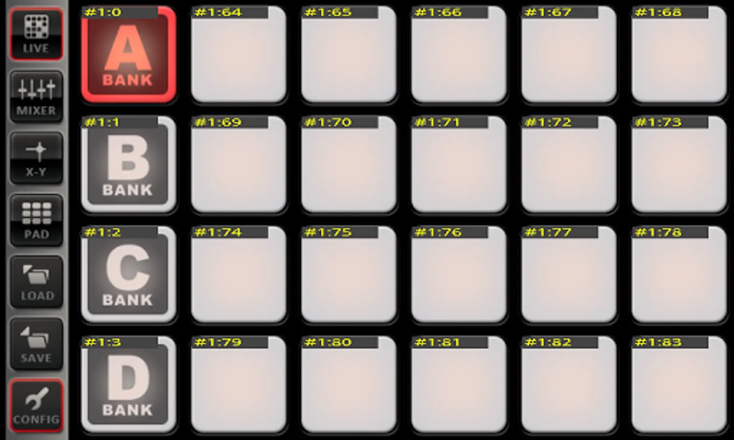 * Live with 4 banks of 20 pads and Ableton Live midi feedback for these pads.