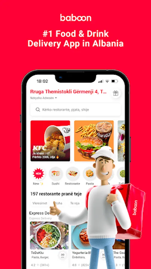Baboon ju ofron Shërbim Delivery & Takeaway Kudo, Kurdo 24/7.