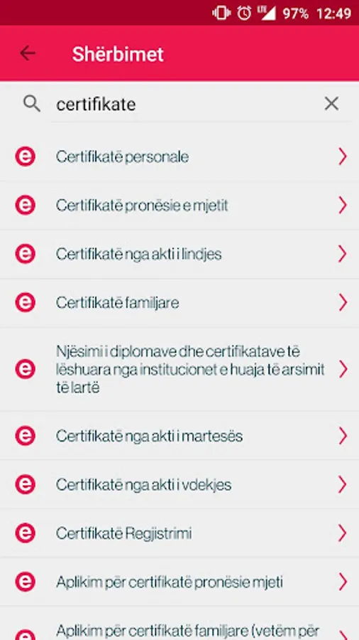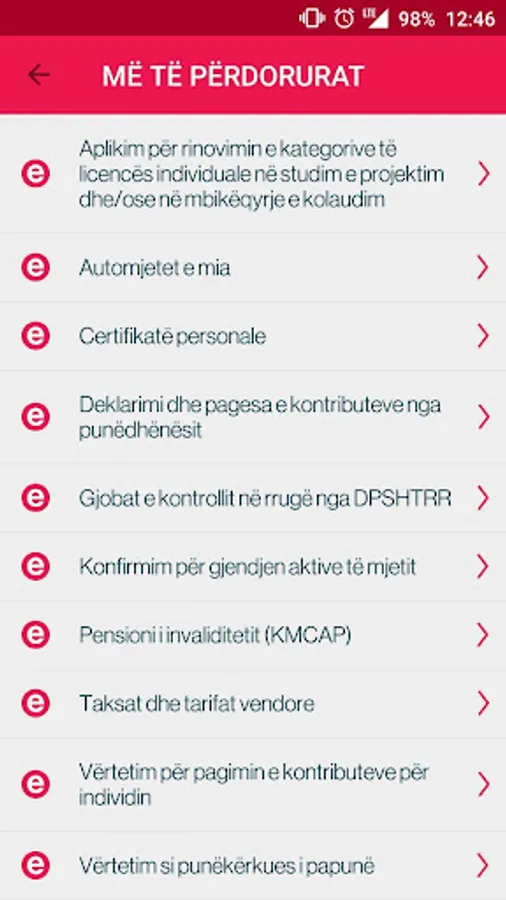 Faturat e energjisë elektrike, kundravajtjet rrugore (gjobat), pikët e drejtuesit të mjetit, gjurmimi i çështjeve gjyqësore, taksat e automjetit, të dhëna të gjendjes civile, regjistrimi fillestar i biznesit pranë Qendrës Kombëtare të Regjistrimit, taksat dhe tarifat vendore, notat e provimeve të maturës, lista e barnave të rimbursueshme, të dhënat e Kartës së Shëndetit etj. vijnë në çdo moment në telefonin apo tabletin tuaj Android nëpërmjet aplikacionit e-albania.