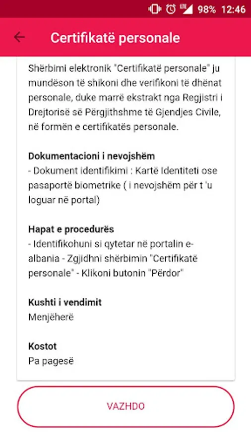 Aplikacioni “e-albania.al” shërben si një portë, nëpërmjet së cilës çdo person i interesuar mund të marrë nëpërmjet internetit, në çdo kohë dhe nga kudo shërbime elektronike të ofruara nga institucionet publike në Shqipëri.
