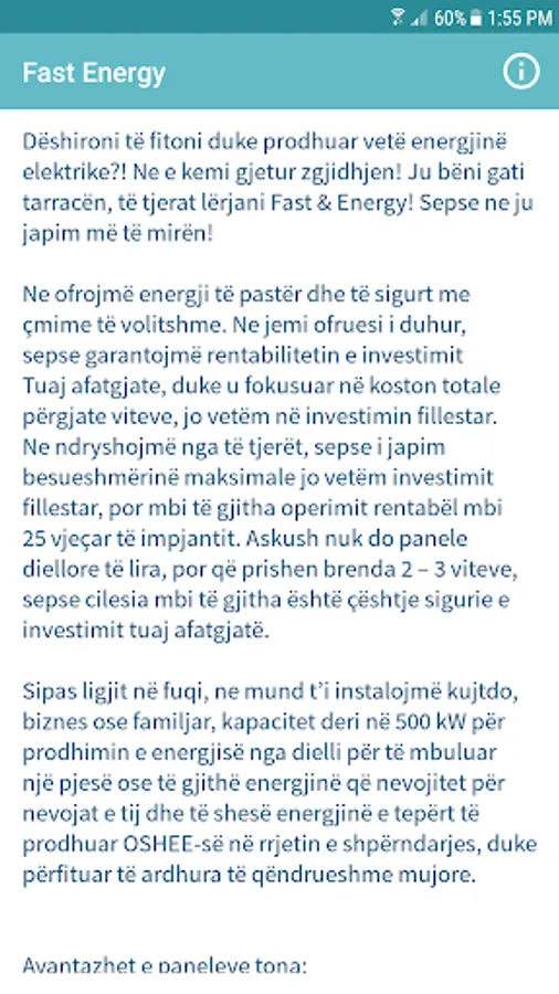 Ne jemi ofruesi i duhur i paneleve diellore, sepse garantojmë rentabilitetin e investimit Tuaj afatgjatë, duke u fokusuar në koston totale përgjate viteve, jo vetëm në investimin fillestar. Ne ndryshojmë nga të tjerët, sepse i japim besueshmërinë maksimale jo vetëm investimit fillestar, por mbi të gjitha operimit rentabël mbi 25 vjeçar të impjantit.