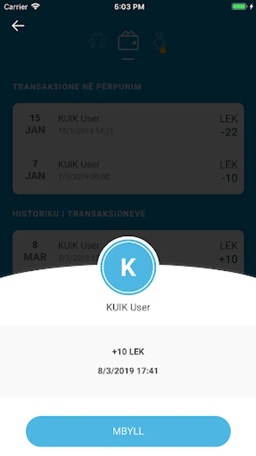 Gjithashtu, përmes KUIK ju mund të kontrolloni balancën e llogarisë, historikun e transaksioneve, etj.