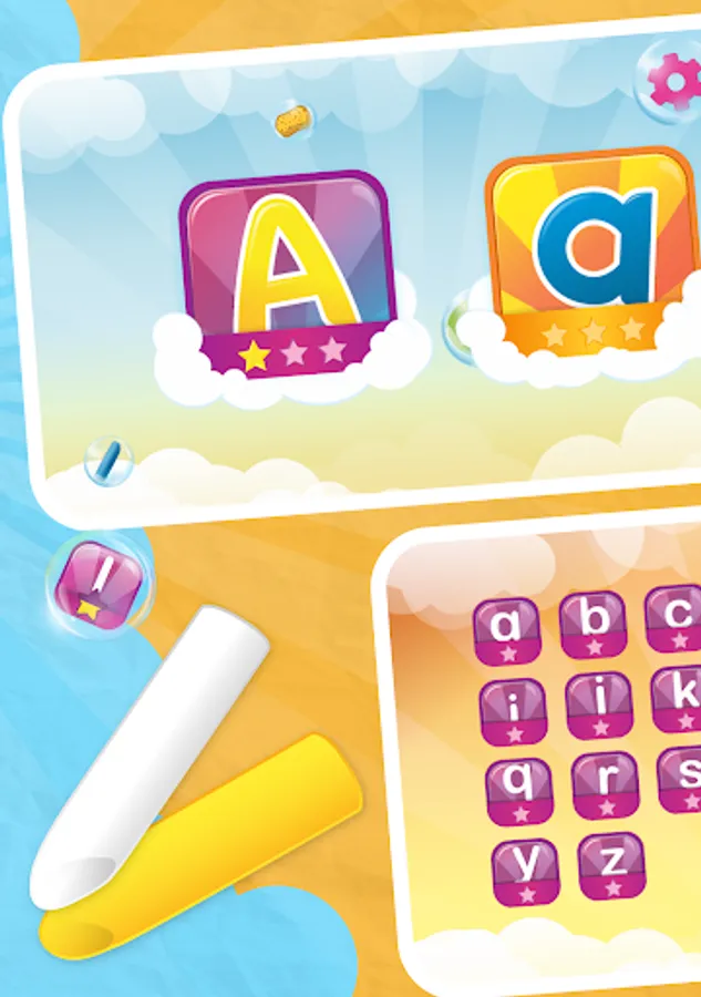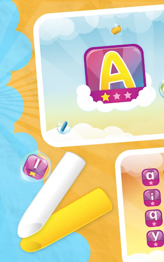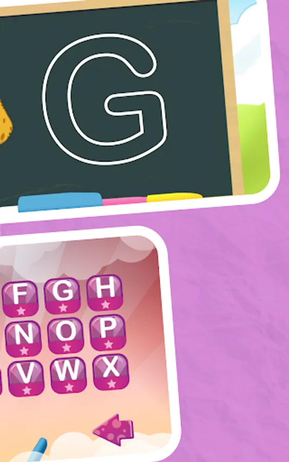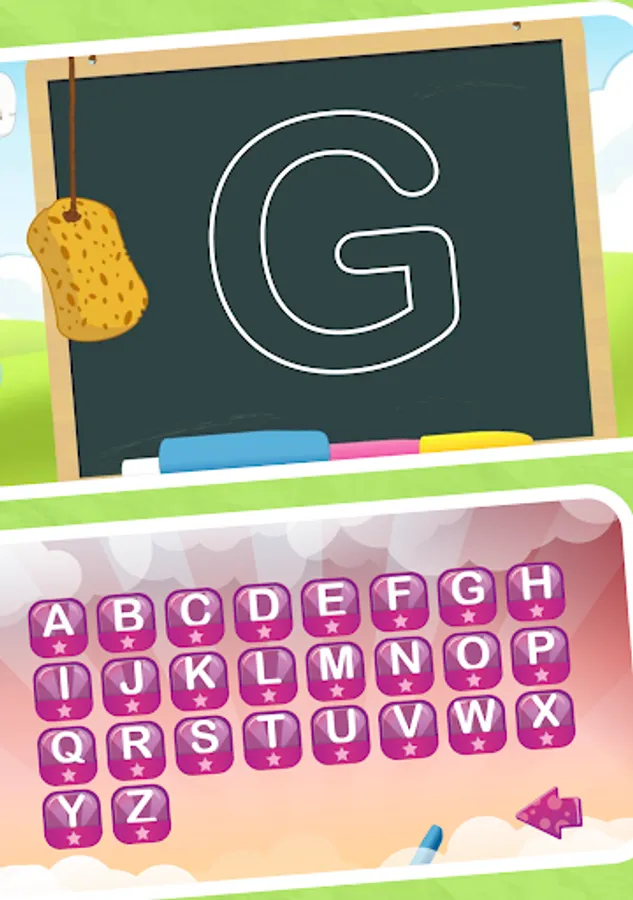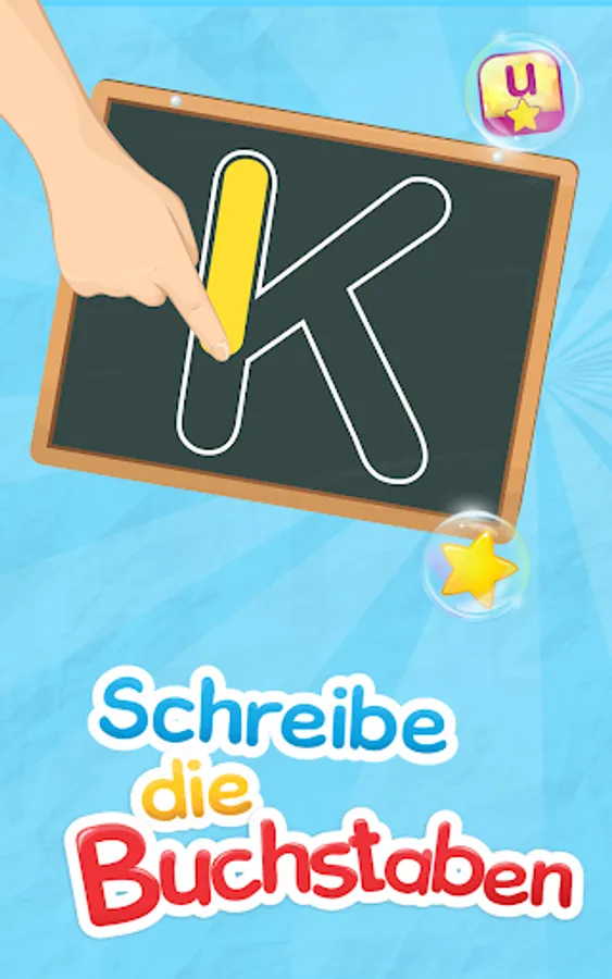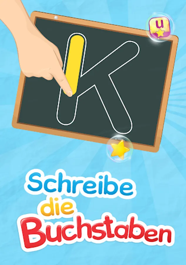 Write an letters on a blackboard with chalk in four different colors. If you have written a letter correctly, the children get up to three stars. However, if they make a mistake, they can wipe it with a sponge and try again.