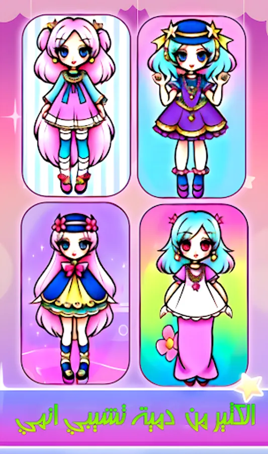 Are you ready to explore the colorful and attractive world of dress up cute and cuddly chibi dolls? Get creative and engaged in the world of styling and fashion with our amazing app. In our "chibi doll dress up games" you will find all the dress-up, makeup and accessories you need to make your chibi dolls look their best. 🌈👕👗