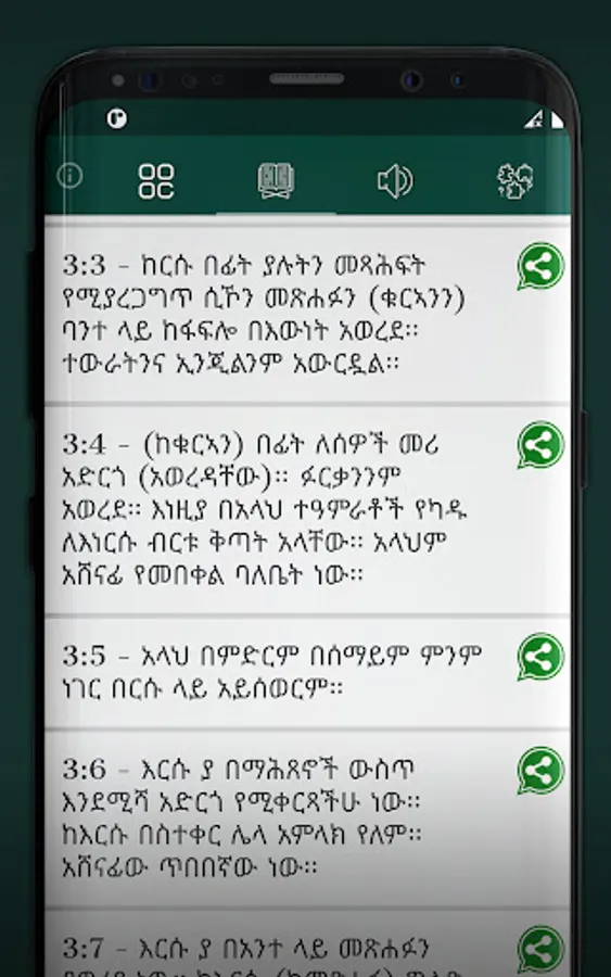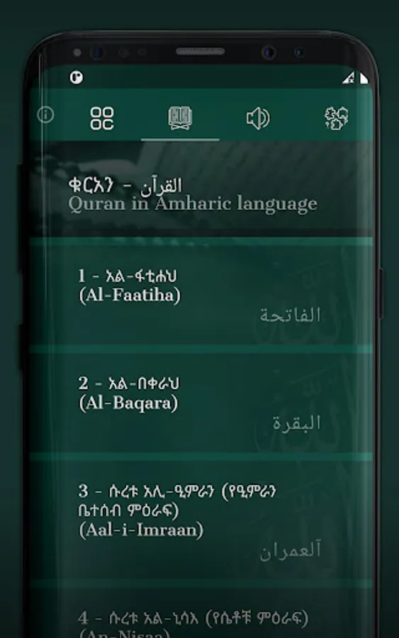 Audio and Text Quran in Amharic, English, French and Arabic.