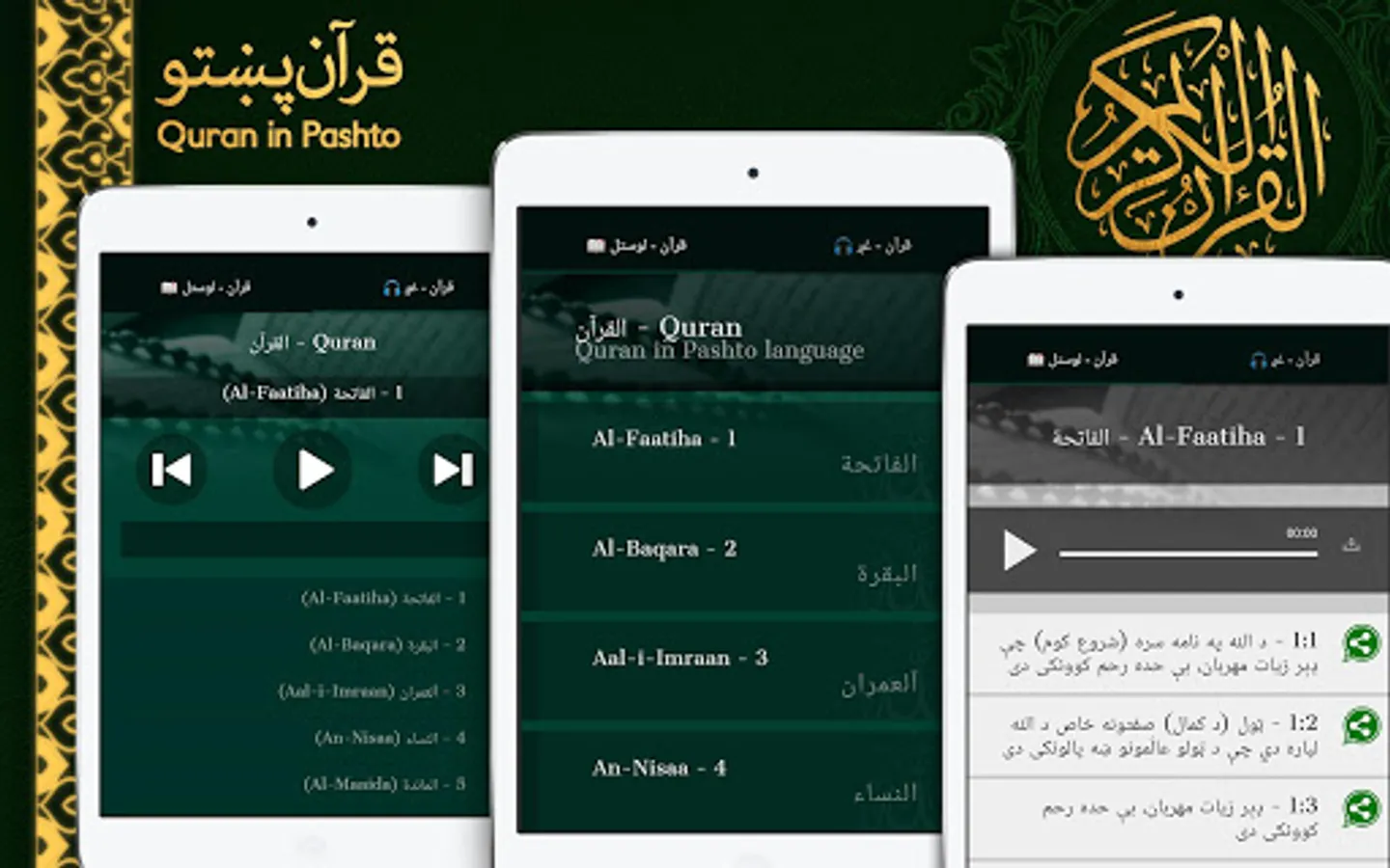 قرآن كريم يا قرآن مجيد يا قرآن عظيم د مسلمانانو سپېڅلې كتاب دى، چې د څښتن تعالى له لورې په گران نبي آخرزمان صلى الله عليه وسلم باندې د جبرييل امين عليه السلام په واسطه په عربي ژبه لفظ اومعنى سره، په تواتر سره منقول د ۲۳ كلونو په موده كې د ټول بشريت د لارښوونې لپاره رانازل شوې دى. او دا قرآن يوه لويه معجزه ده، چې د قيامت تر ورځې پورې به د رسول الله صلى الله عليه وسلم په استازيتوب او رسالت باندې گواهي وركوي. ټولې كفري نړۍ ته چلېنج وركوي، كه هغه انسان وي، كه شيطان يا پېرې ترڅو ددې په څېر يو بل كتاب راوړي، او يا هم د يوه سورت په څېر كوم څه راوړي. مگر دوي لدې څخه هم عاجزه پاتې شول. ځښتن تعالى دوي ته وخت پروخت چلېنجونه وركړي ترڅو پدوي روښانه كړي چې دوي دا كار نشي كولاى. د (الاسراء) په سورت كې داسې فرمايي: