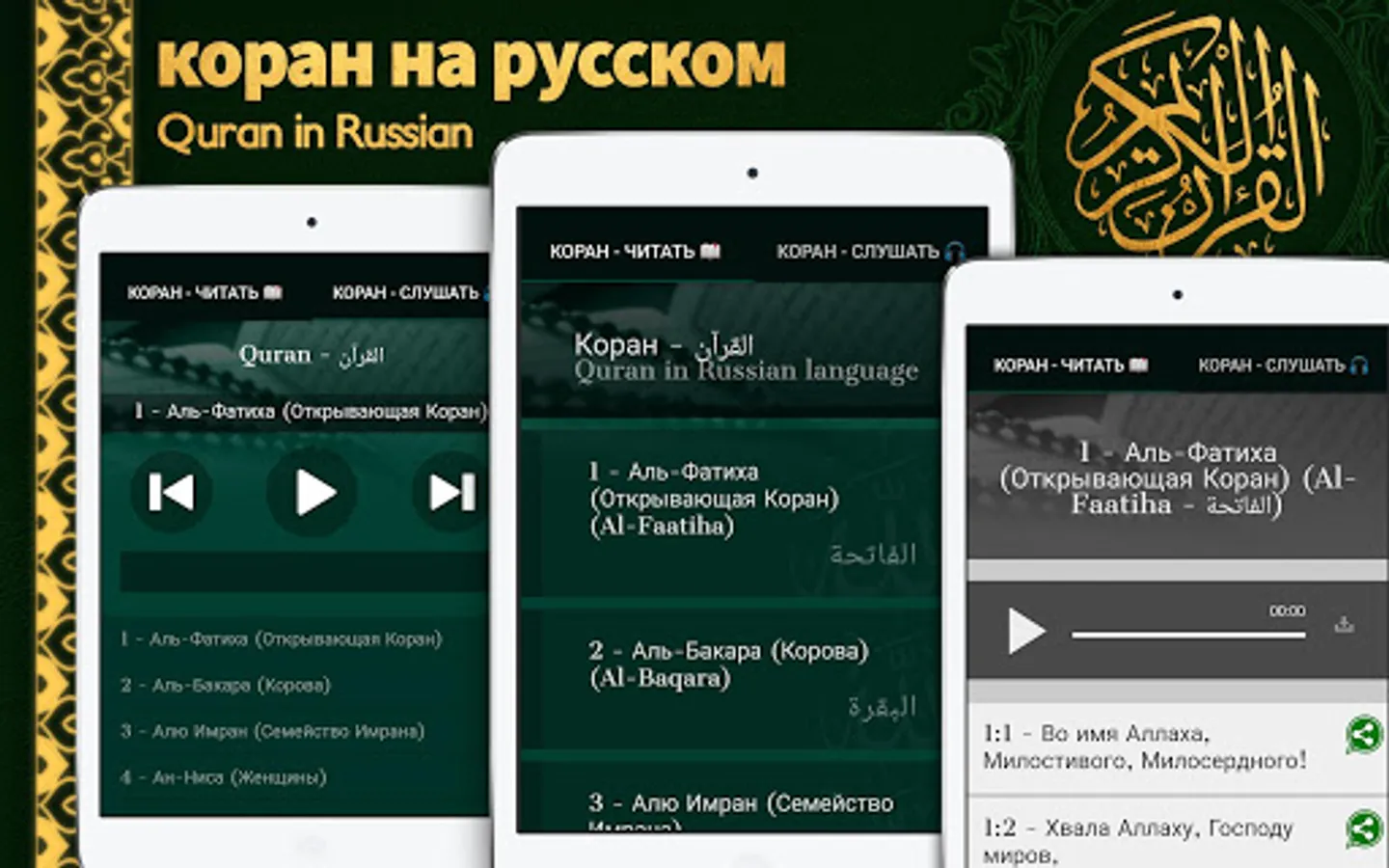 Священный Коран в оригинале написан на арабском языке, традиционном в мусульманском богослужении. Это говорит о том, что совершенно точный перевод коранических сур невозможен, если не считать построчного перевода, при котором не удается уловить глубинный смысл. Тем не менее, содержание главной книги мусульман переведено на все существующие языки мира. Поэтому, в наше время нет затруднений читать Коран на русском языке.