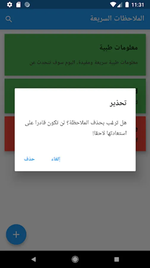 About الملاحظات السريعة