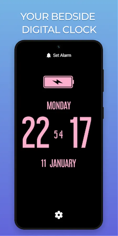 It comes with a built-in nightstand digital clock. Once set as a screen saver and your phone is plugged into your charger, it automatically displays the current time and battery charging status with LCD style and large fonts.