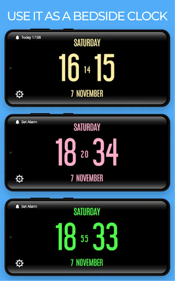 ◉ Nightstand mode: see what the time is at night while your Android is charging;