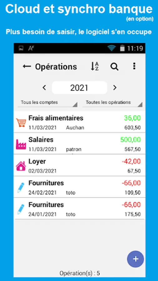 - With the "Bank synchronization" option, you no longer need to enter your transactions. An absolute time saver!