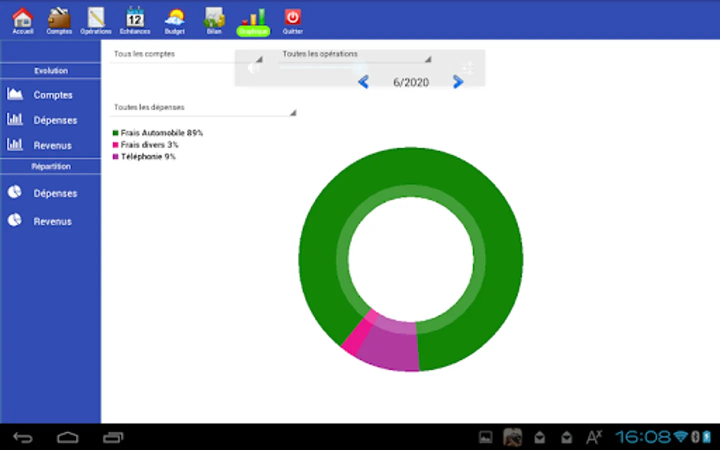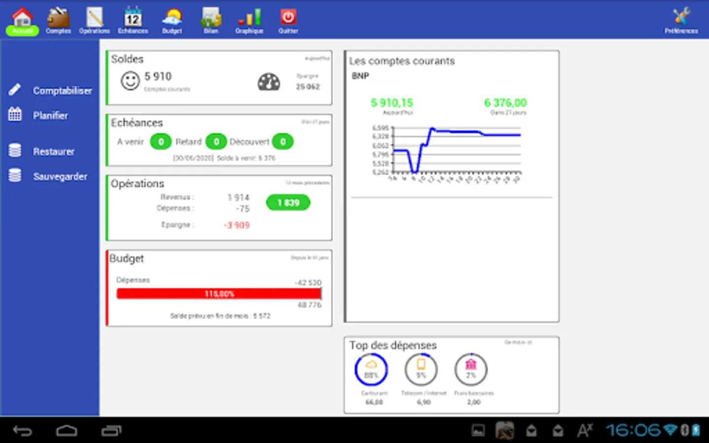 - Graphics module: evolution of accounts, breakdown of expenses...