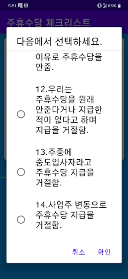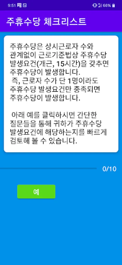 The 2nd part of the Wise Part-Time Series, “Weekly Holiday Allowance Checklist” is authorized to prevent disputes that may arise between youth and part-timers and small business employers in advance, and to provide basic knowledge of labor law to part-timers and small business owners. It is an app that guides the application and analysis of weekly holiday pay directly developed by the labor attorney.