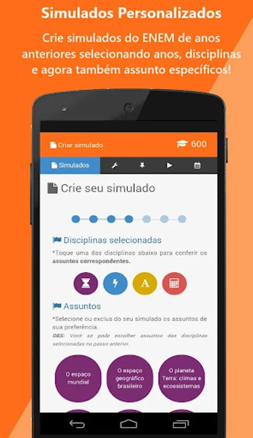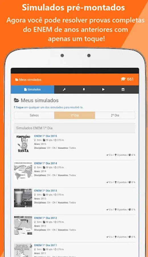 -My Simulated: You can also save your favorite simulated settings or perform specific tests ENEM (2015 Day 1, for example).