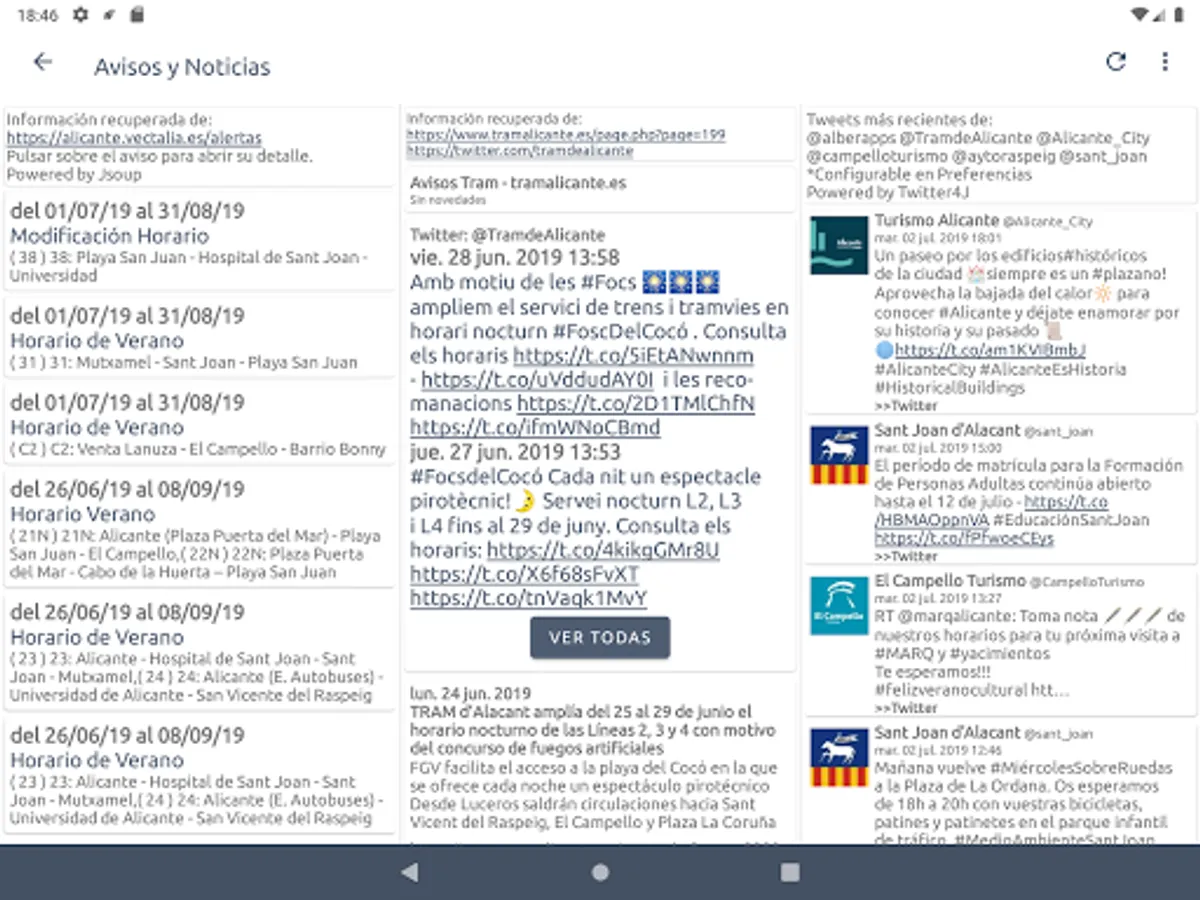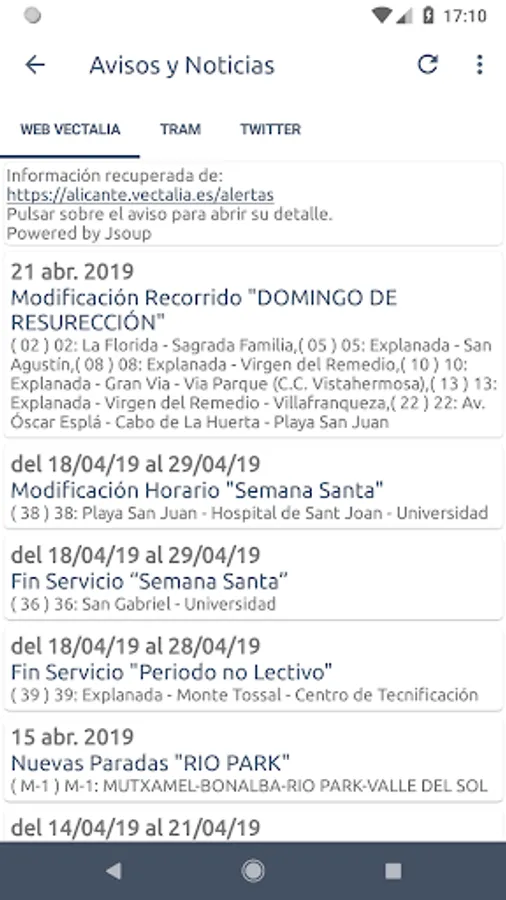 - Consultation of Notices and News from the Vectalia website. (with alerts), the TRAM and Twitter