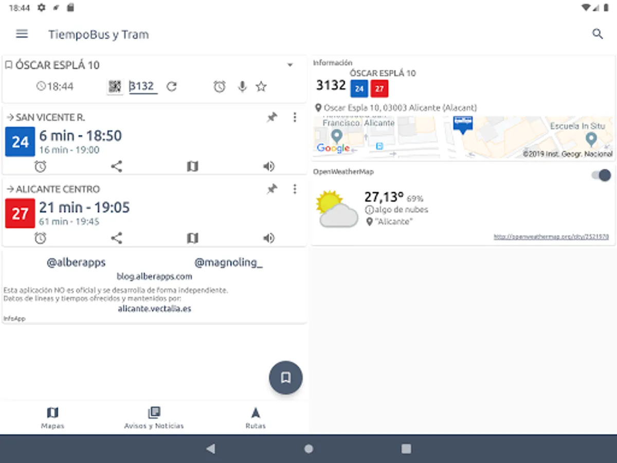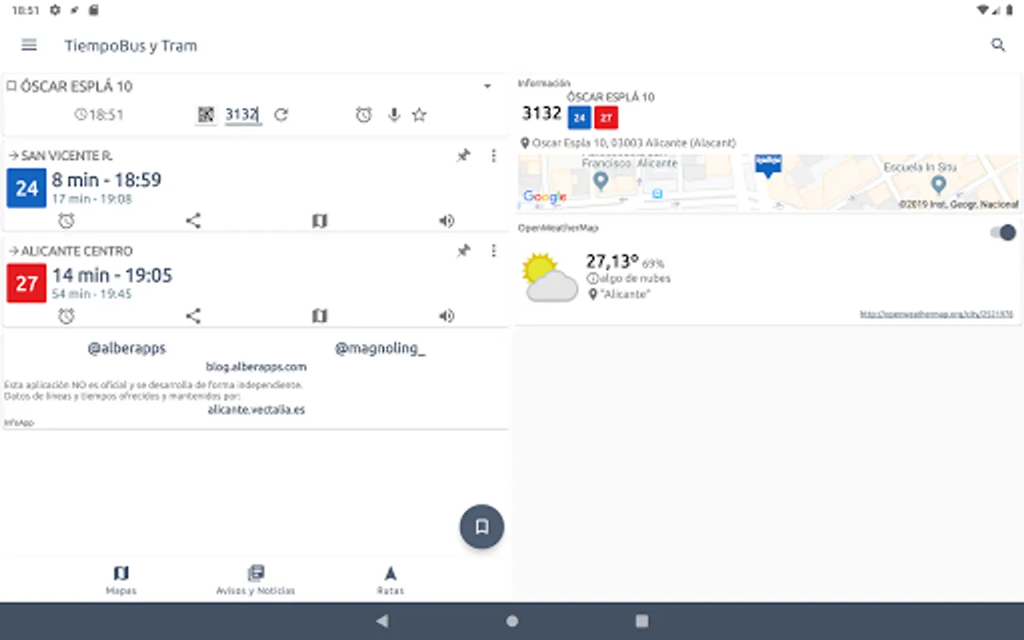The information and times are offered and maintained by http://alicante.vectalia.es and http://www.tramalicante.es