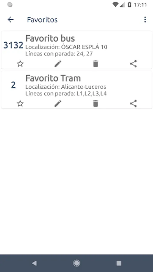 Dynamic consultation of transit times for buses (TAM, etc) and trams (TRAM) in Alicante and various locations.