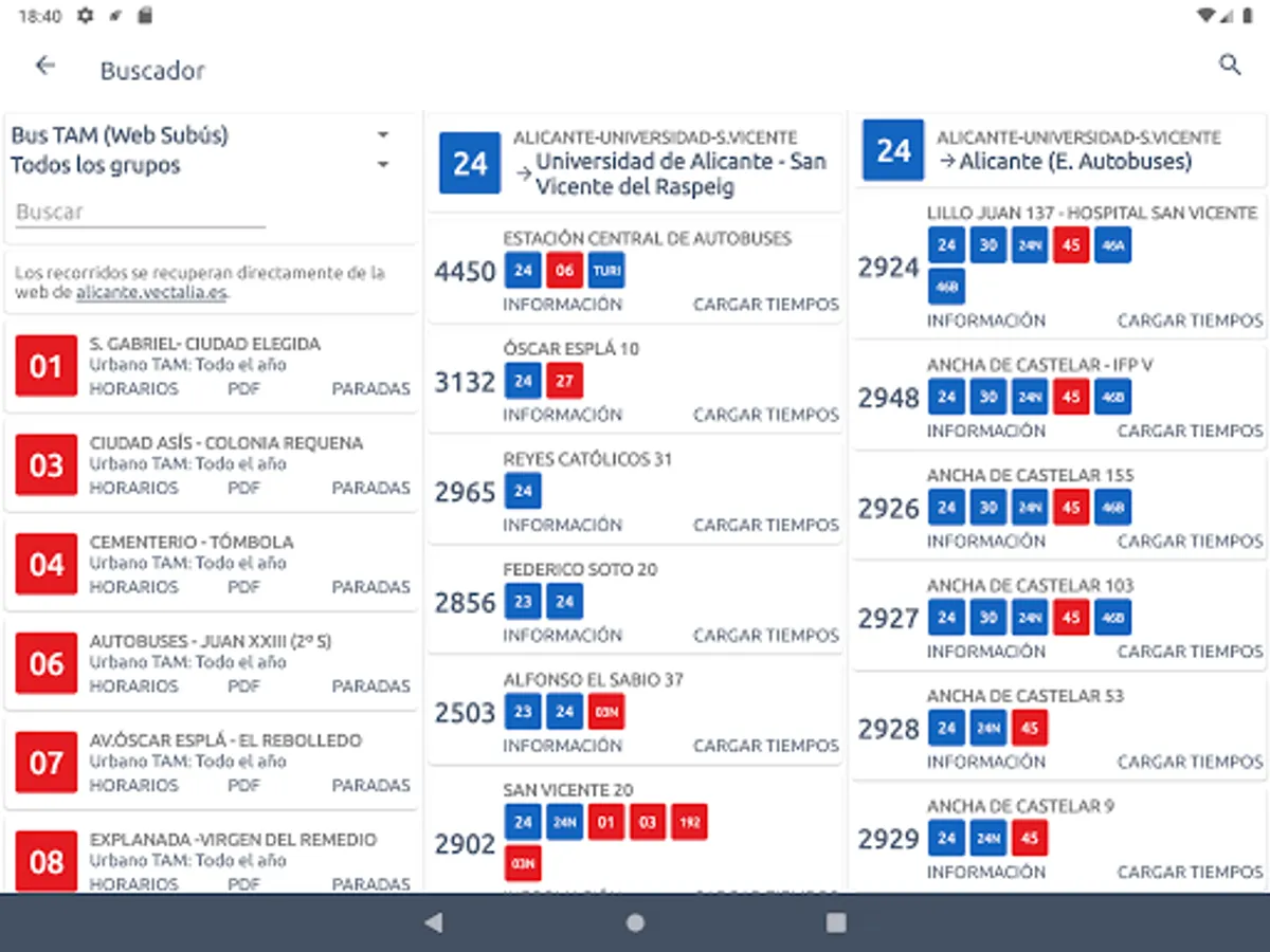 TAM and others: Alicante, El Campello, Sant Joan, Sant Vicent del Raspeig, Mutxamel, Xixona, Shuttles to the University of Alicante, Tourist Bus, Playa San Juan, etc.