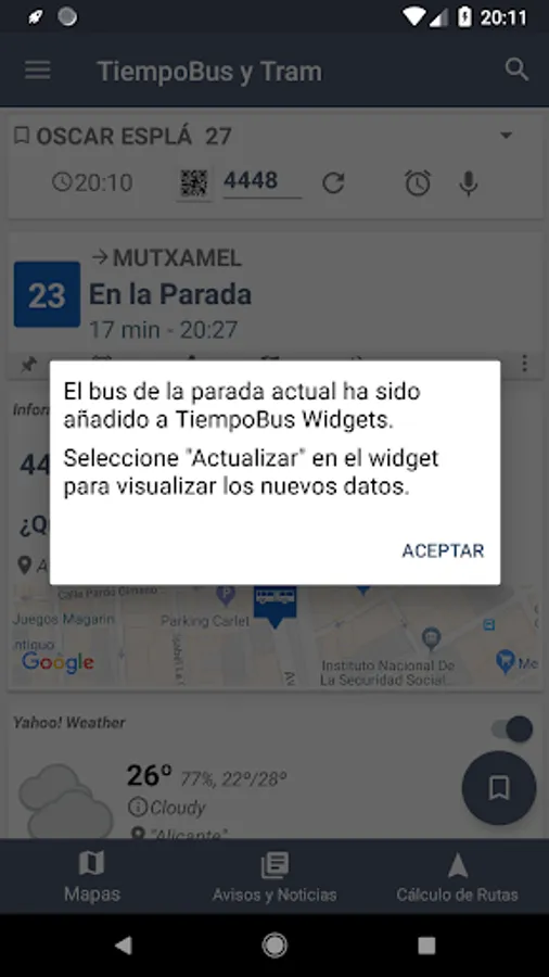(* It is required to have installed the application TiempoBus and Tram Alicante)