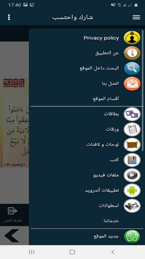 - The ability to share the text of the verse or hadith.