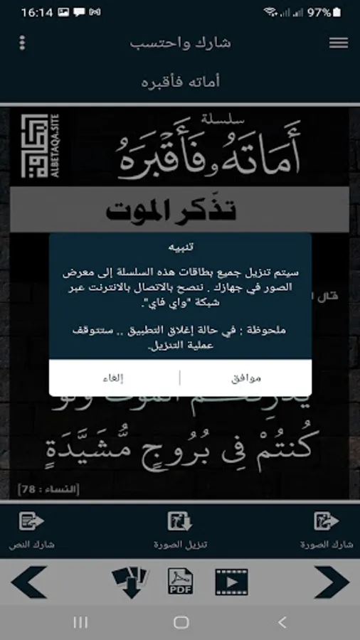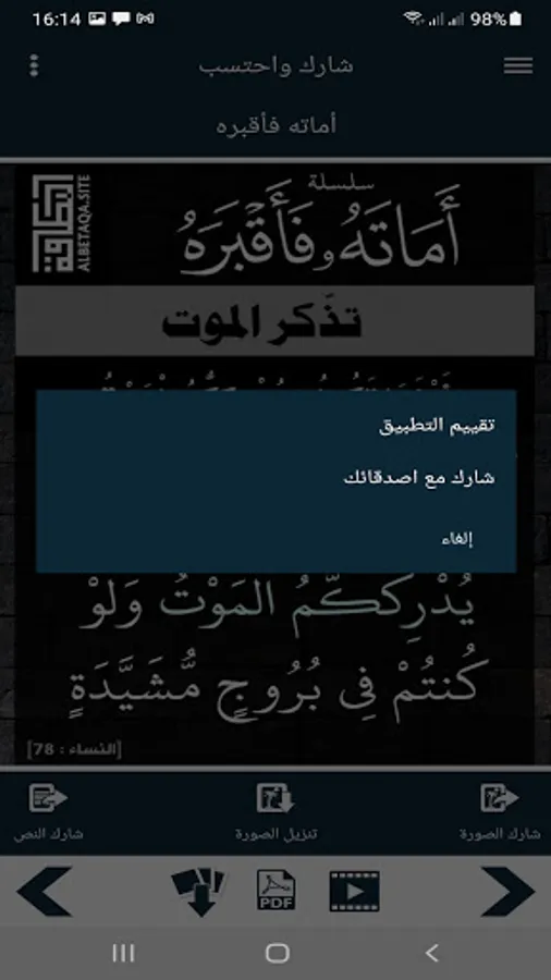 - The ability to share the text of the verse or hadith.