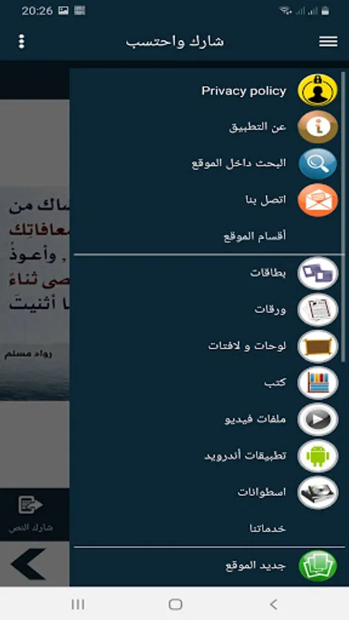 - Show chain cards with the ability to share them via different mobile applications (WhatsApp - Facebook - Twitter - Instagram - Telegram - Messenger ... etc.).