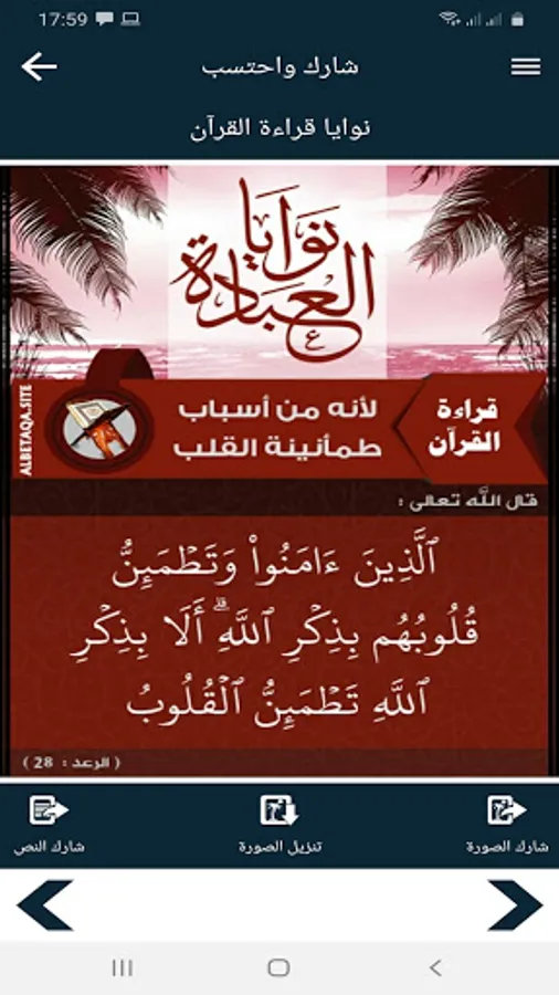 - The ability to share the text of the verse or hadith.