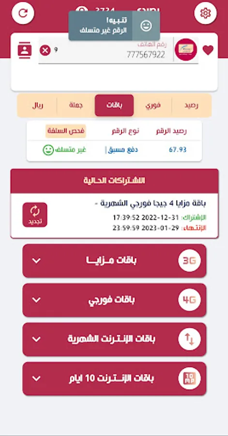 A diverse application that includes paying the balance to all networks and activating the packages and special offers in each of the local networks
