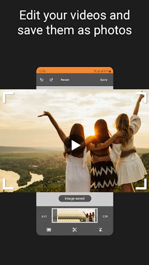 The included video editor enables you to easily trim your videos. Make short video clips from long movies. Remove sound from a video. Finally, take a snapshot of any video frame and save them as photos.