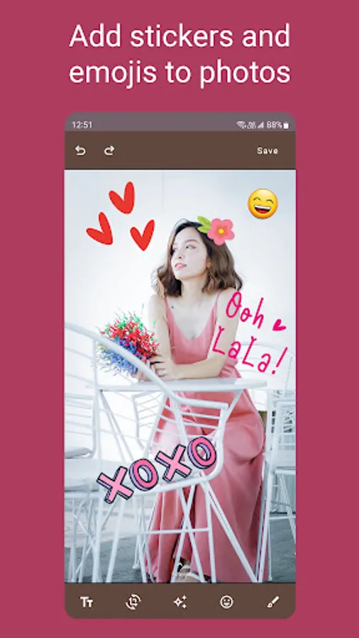 The included photo editor lets you crop, rotate and resize images. Apply beautiful photo filters, add funny emojis and stickers or draw on your photos. Make your images picture perfect before sharing them to popular sites such as Facebook or Instagram using the in-app sharing function.