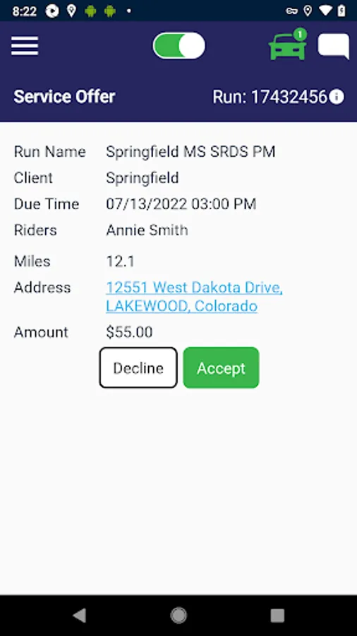 This application is used by drivers providing transportation services for EverDriven passengers. It allows drivers to accept or reject service offers, provides student pickup and drop-off details, and allows drivers to communicate with the EverDriven Student Monitor and Tracking Team when needed.