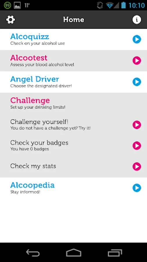 The app offers also a standard test to check your level of dependency as well as another module which will tell you based on your last consumption of drinks, weight and age, whether it would be safe to drive yet or not.