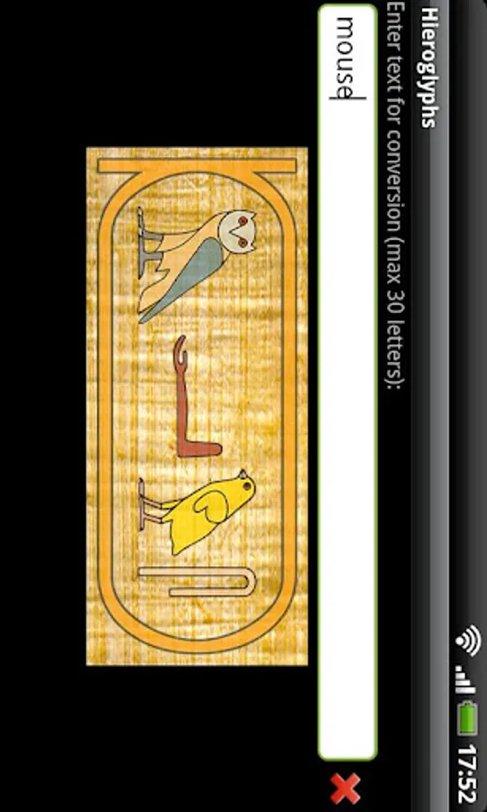Enter name and it will be converted to Egyptian hieroglyphs.